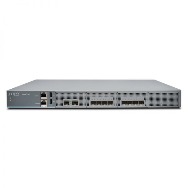 SRX4200 Services Gateway включает аппаратное обеспечение (8x10GE, два блока питания постоянного тока, четыре кассеты FAN, кабели и RMK) и программную базу Junos (брандмауэр, NAT, IPSec, маршрутизация, MPLS)